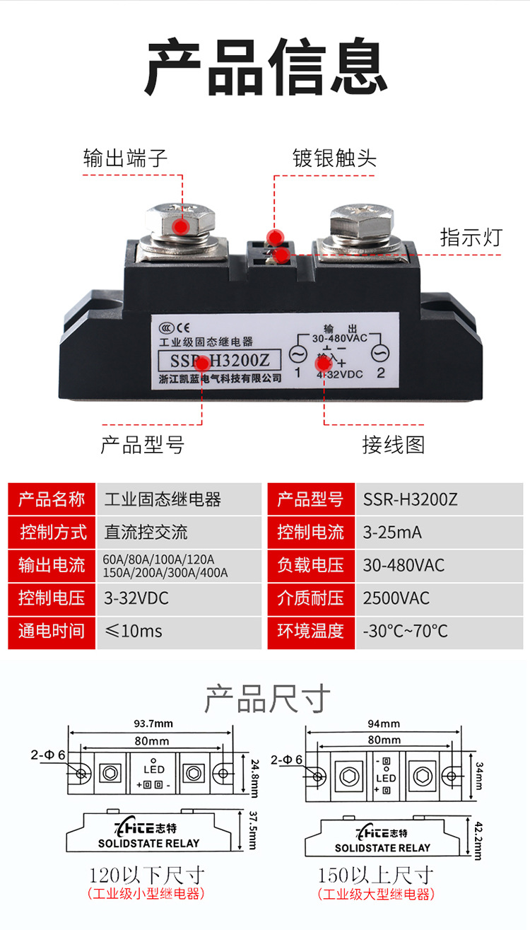 工业级固态继电器 直流控制交流 电加热温控炉SSR 60A 80A 100A