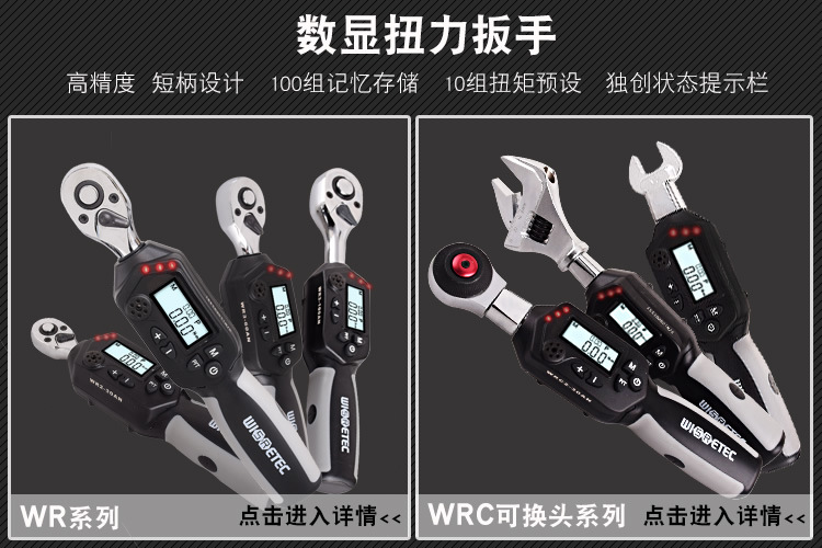 新品直销WISRETEC高精度数显扭力扳手 0.3-100Nm可调预置扭矩扳手