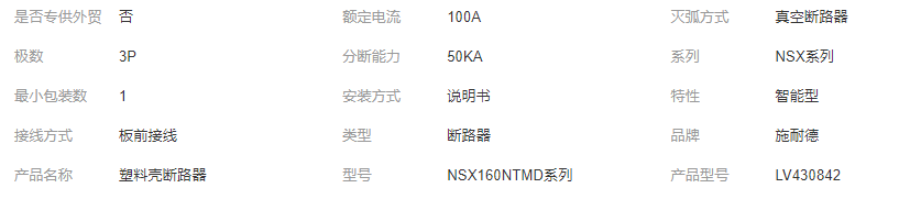 施耐德电气 NSX塑壳断路器160N TM100D 3P/4P 华盛安达厂家供应