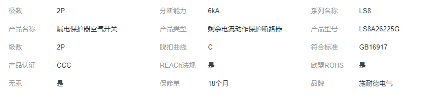 施耐德电气 漏电保护器空气开关 LS8 小型断路器 C63A 2P 30mA