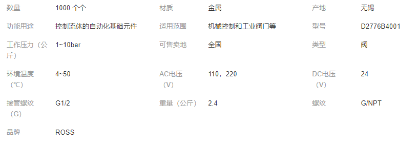 批发美国原装ROSS阀D2776B4001W/Y/Z两位四通阀 G1/2 24VDC