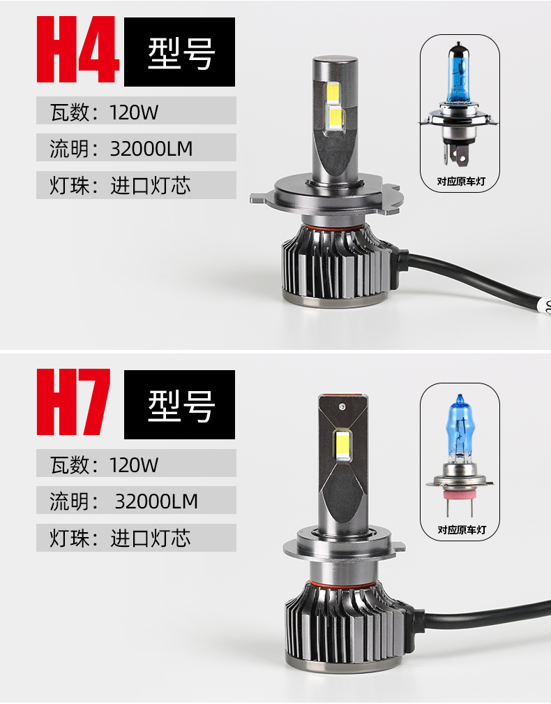 厂家直销改装汽车led大灯远近光灯泡货车24V激光透镜H7H1900512远