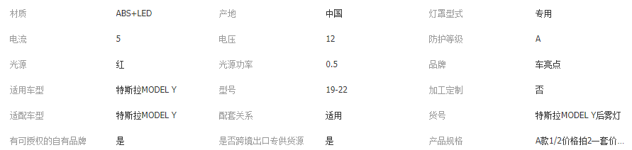 跨境适用特斯拉MODEL Y专用后雾灯Tesla MODEL Y领航灯一件代发