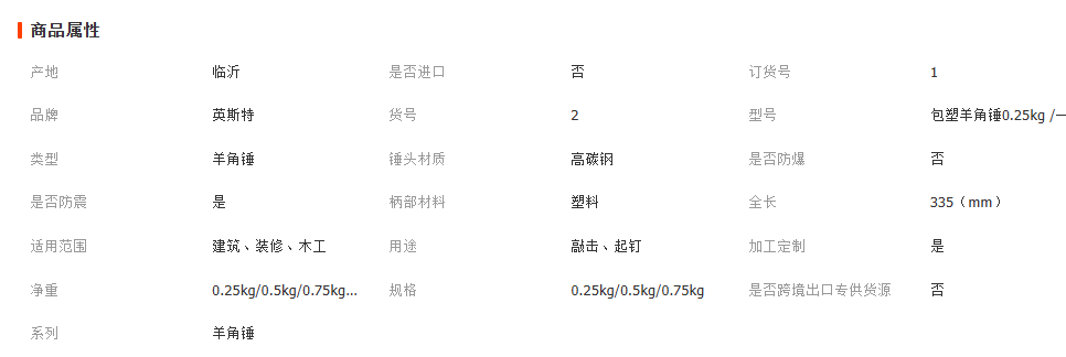 0.5kg包塑柄羊角锤 0.25公斤吸钉起钉锤绝缘纤维柄锤子榔头