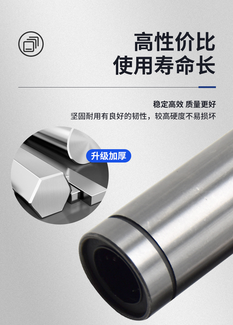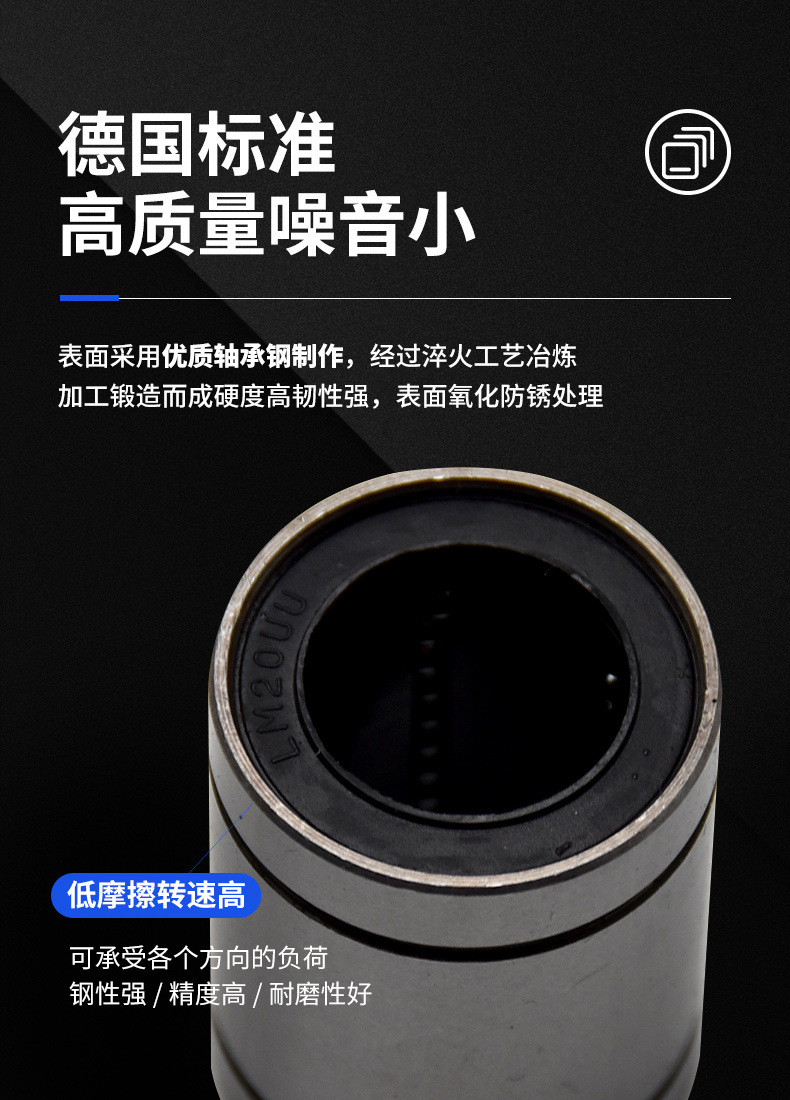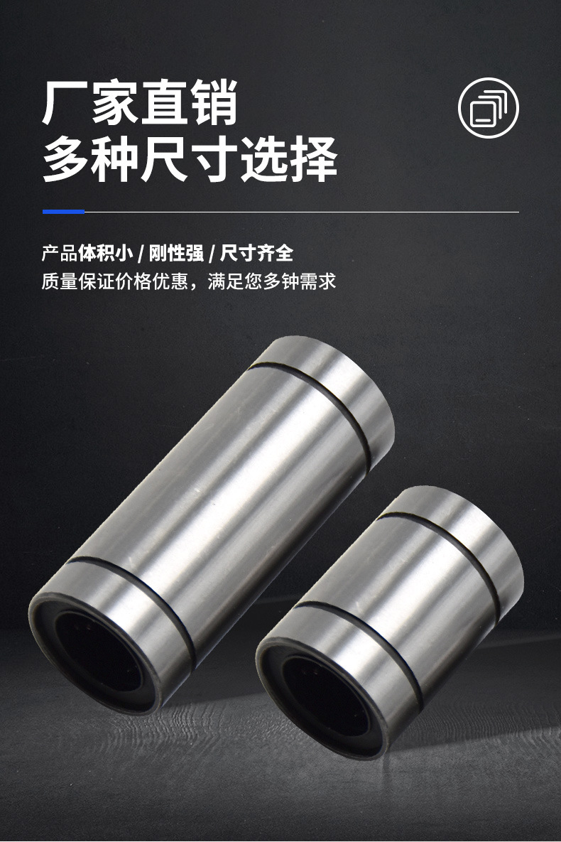 型号LM3UU 3*7*10,LM4UU 4*8*12,LM5UU 5*10*15,LM6UU 6*12*19,LM8UU 8*15*24,LM10UU 10*19*29,LM12UU 12*21*30,LM16UU 16*28*37,LM20UU 20*32*42,LM25UU 25*40*59,LM30UU 30*45*64,LM35UU 35*52*70,LM40UU 40*60*80,LM8SUU 8*15*17,LM50UU 50*80*100,LM60UU 60*90*110,欧标 LME16UU 16*26*36,LM13UU 13*23*32,LM80UU 80*120*140,LM100UU