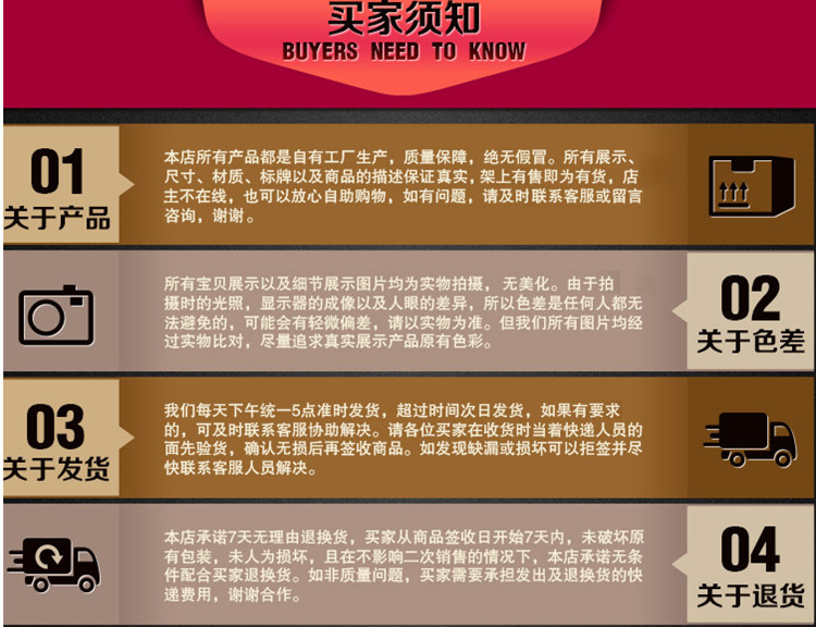请买家在收到快递包裹时不要急于签收,务必当即拆开包裹确认货物完好后再与快递派送员签收!!若发现货物有损坏,请立即拒绝签收并让派件员作出签字作证,退回包裹,我们会与快递公司协商赔偿事宜。