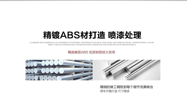1. 采用进口ABS硬质塑料为原材料,产品持久耐用,能在不同的环境条件下使用,不变色不变形,保护爱车,令您的爱车更有立体感、更抢眼!