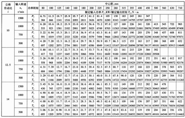 工作条件:两轴交角为90°;蜗杆转速不超过1500r/min;工作环境温度为0~40oC,当环境温度低于0oC或高于40oC时,启动前润滑油要相应加热或冷却;蜗杆轴可正、反向运转。