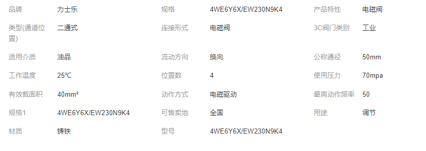 力士乐钢厂液压机械用电磁阀4WE6Y6X/EW230N9K4