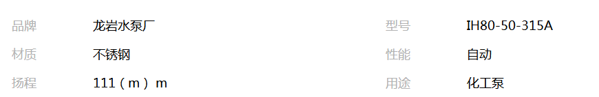 九龙水泵IH型化工泵品牌龙水