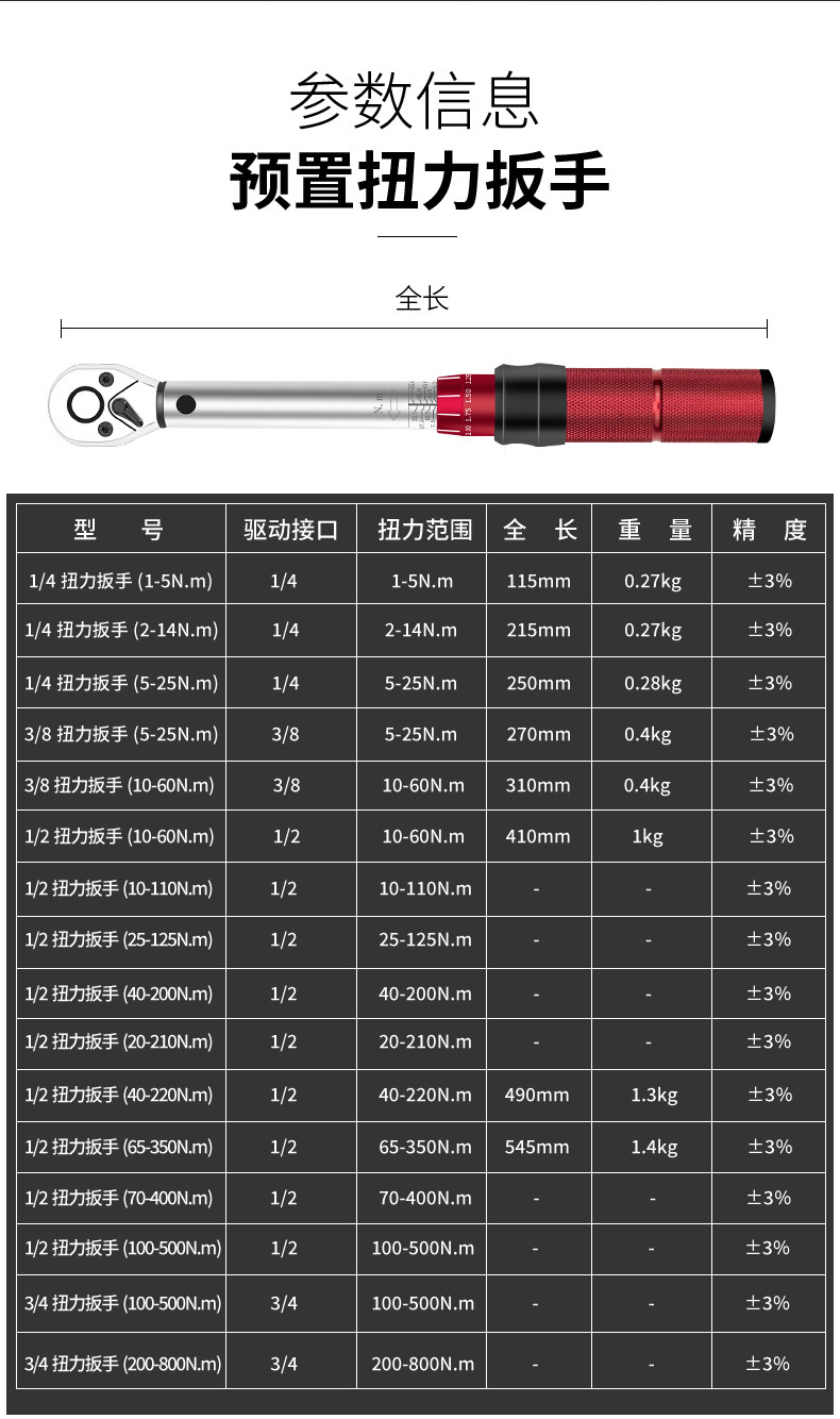 巨众1/2大飞10-60N.M预置可调扭力扳手高精度快速力矩扭矩公斤