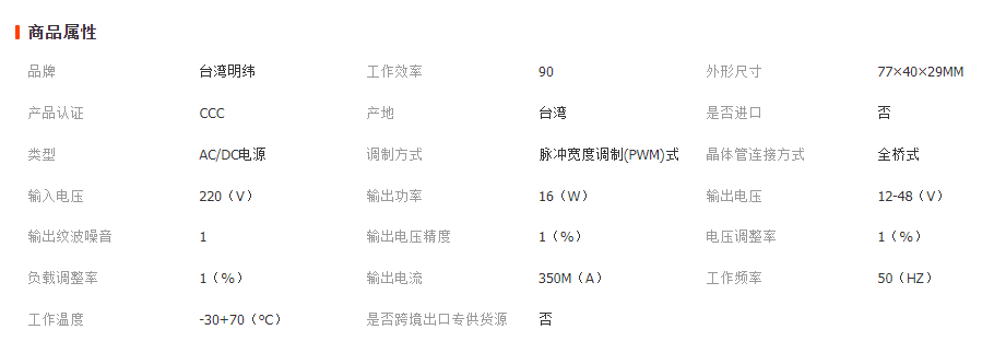 台湾明纬LED开关电源 APC-16-350 16W 12-48V350mA