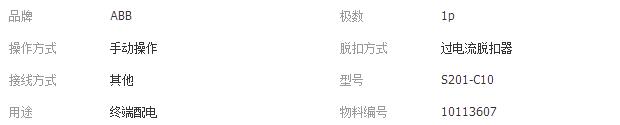 ABB微型断路器 S201-C10 1p 10A ABB 固定式 空气式微型断路器