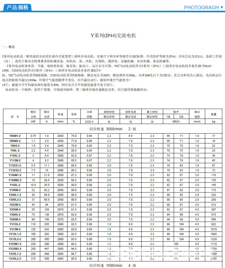 厂家优质供应Y200L1-2 30KW 三相异步电动机 B3 /B5/B35