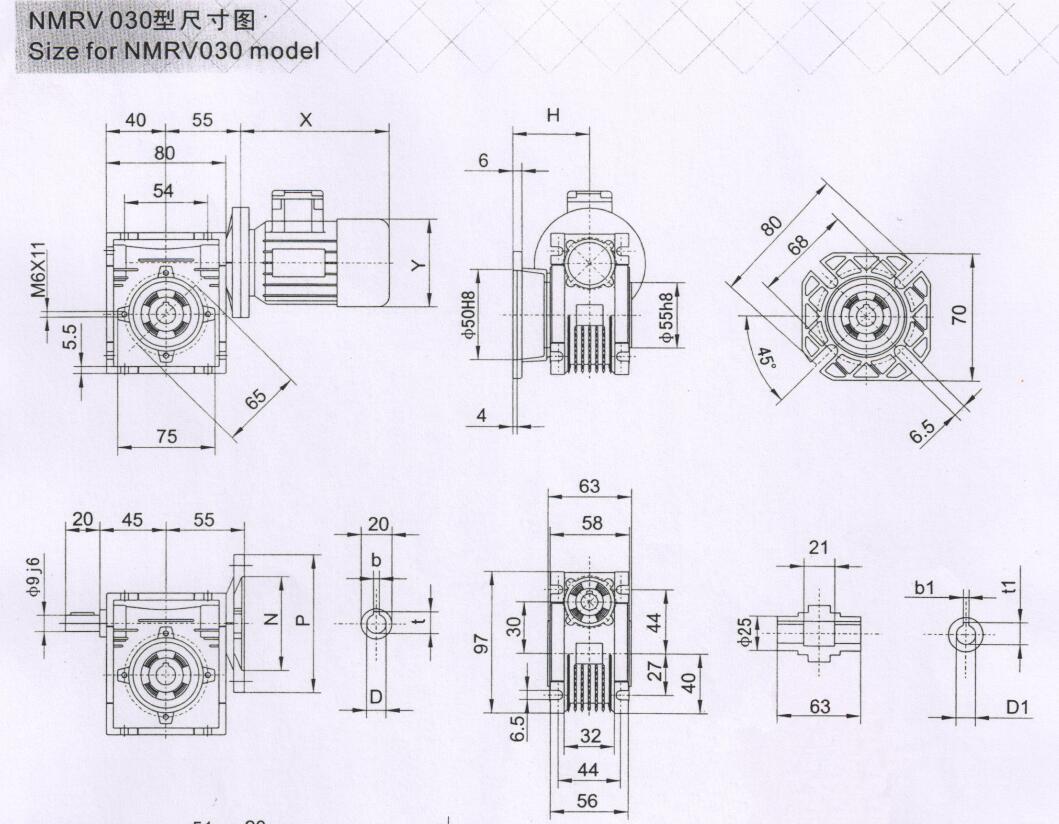 4.减速机装配电机时,应在蜗杆头部内孔孔壁及键槽处涂抹黄油,避免装配过紧,防止轴孔日久生锈。