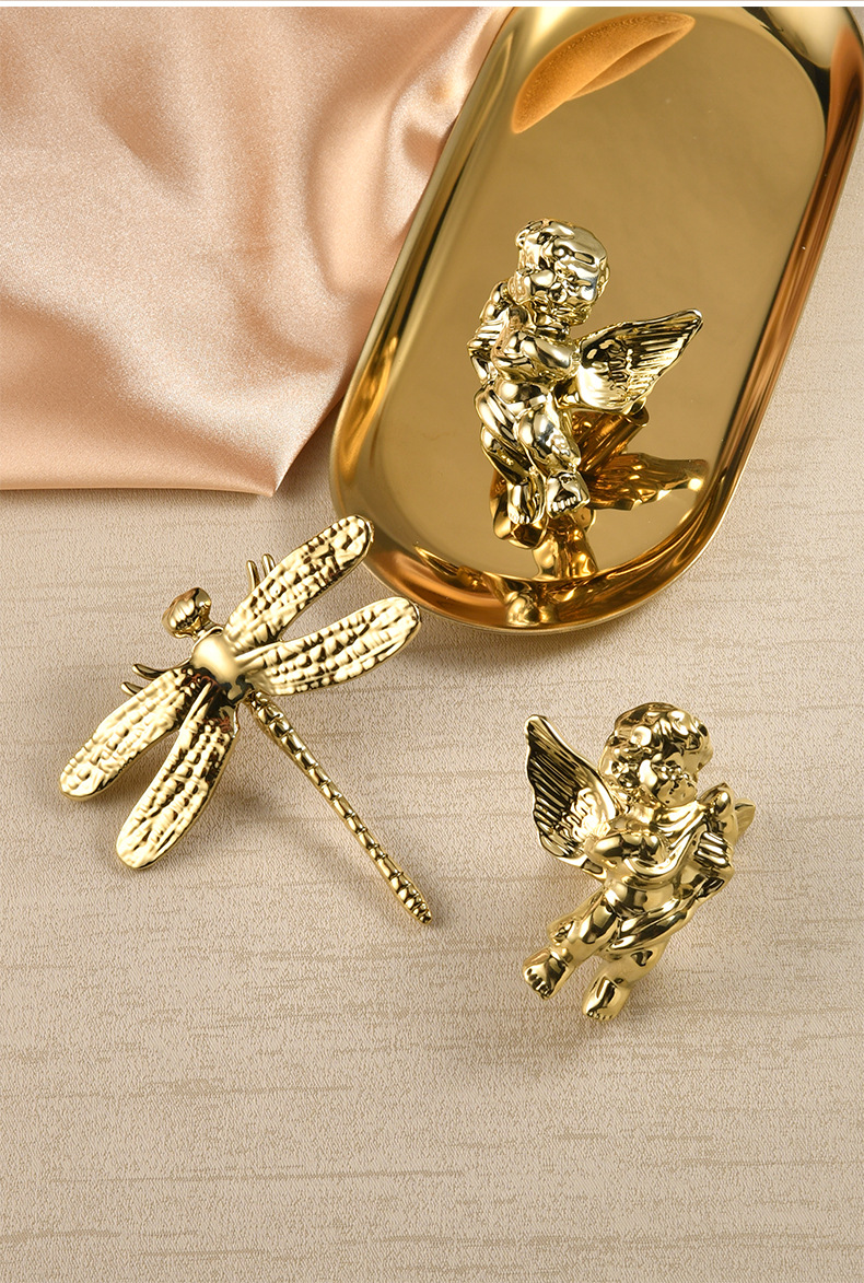 衣柜门可爱小天使黄铜拉手 创意儿童房间柜门蜻蜓蝴蝶铜把手