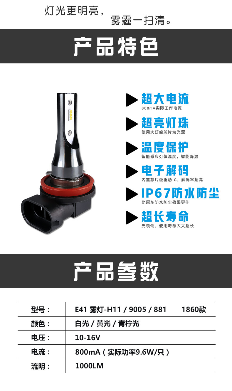 车卡仕 E41高亮雾灯 LED大功率青柠色 亚马逊汽配产品 汽车防雾灯