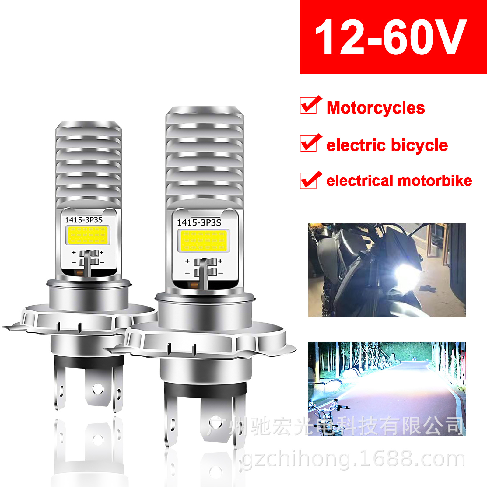跨境高亮LED摩托车led大灯COB白光摩托车灯led灯泡电动车灯改装