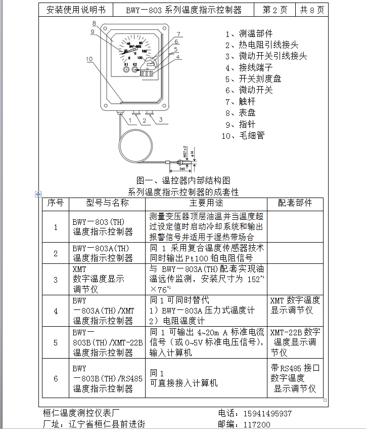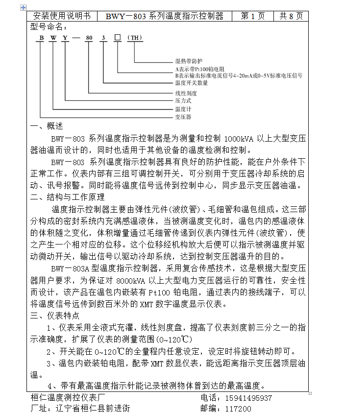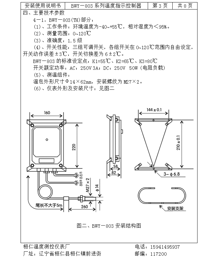 开关性能:三组可调开关,各组开关在0~120℃范围内自由设定,开关动作误差±3℃,开关切换差为6±2℃。