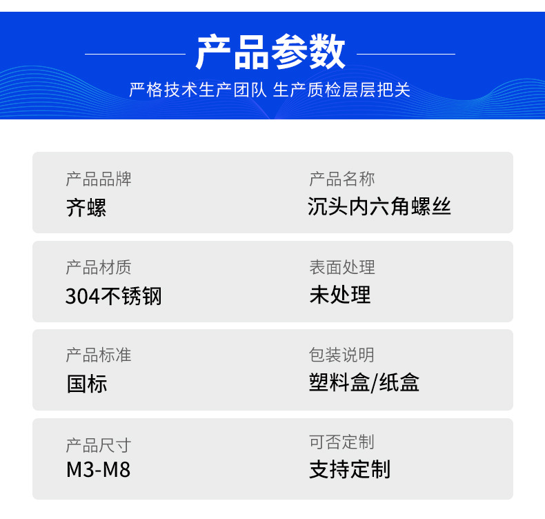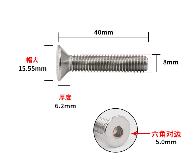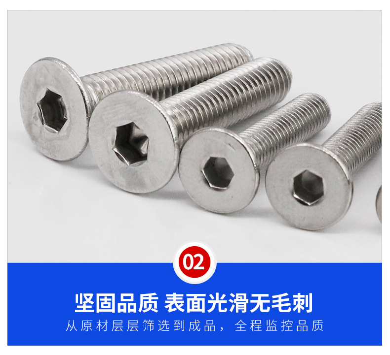 304不锈钢沉头内六角机牙螺丝GB7991沉杯平头内六角螺钉M3M4M5M10