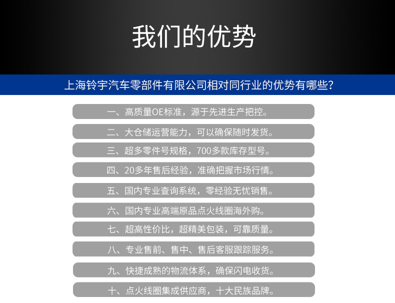 本公司是点火线圈集成供应商厂家,荣获点火线圈“十大民族品牌”,点火线圈种类多达700多种。现诚招线上线下,各大电商平台代理,提供完善的售后服务。支持一件代发,海外代发。量大优惠!!