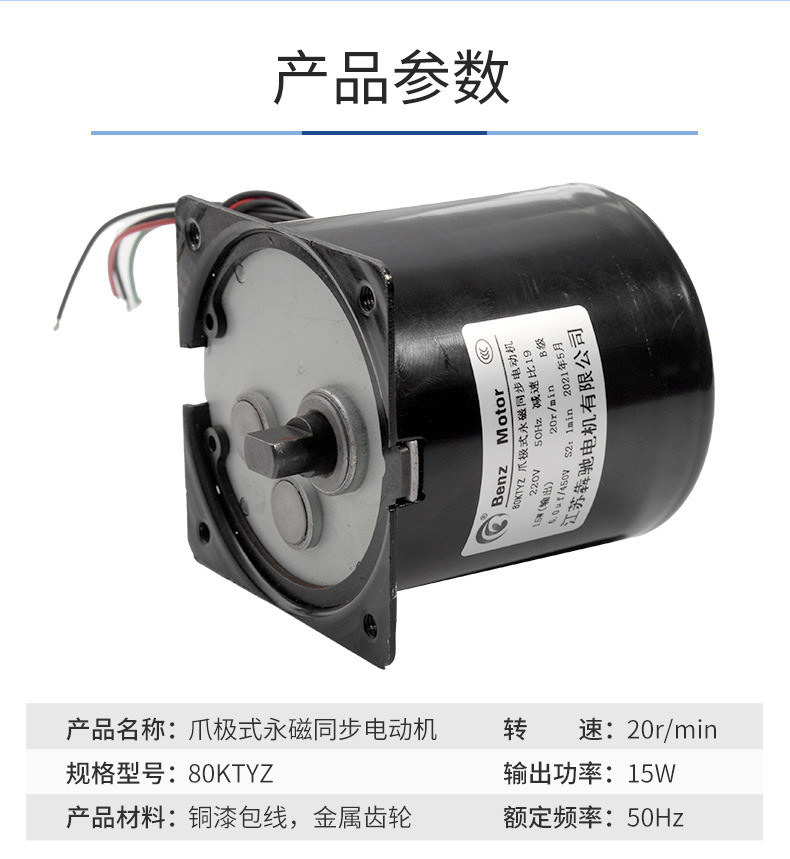 厂家批发微型齿轮减速电机220V 15W 80KTYZ爪极式永磁同步电机