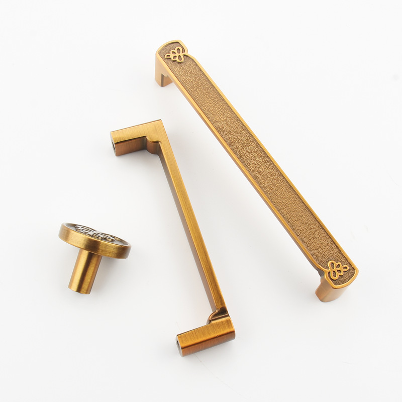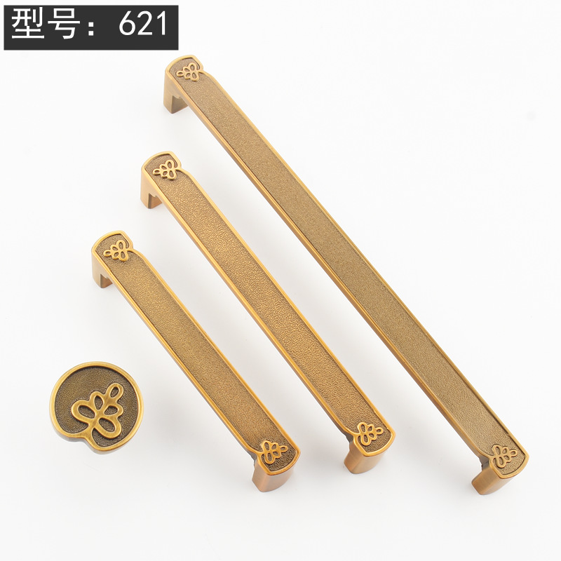 新中式拉手咖啡色橱柜衣柜门抽屉黄古铜锌合金把手五金仿古鞋柜子