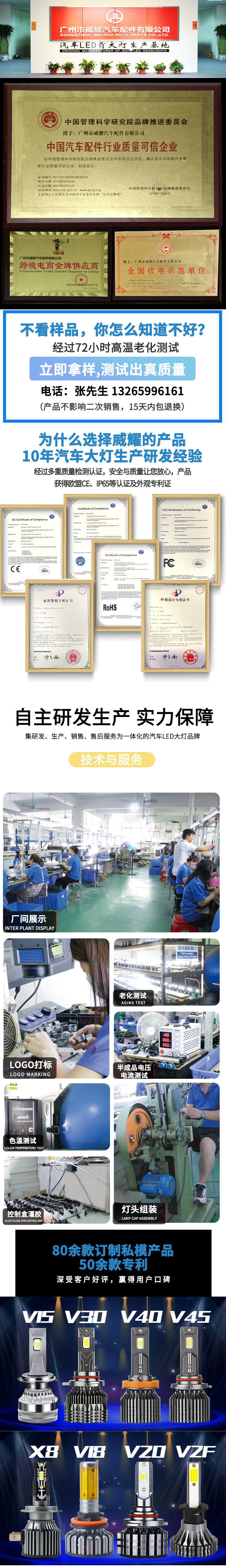 跨境爆款汽车LED大灯360度可调v15前照灯泡60W超亮远近一体改装