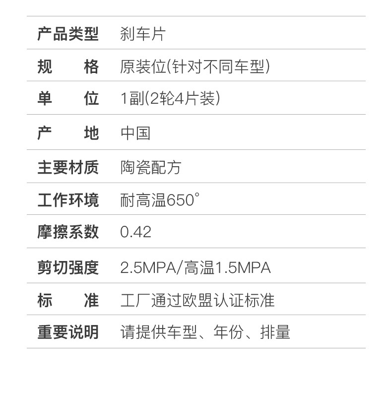 前轮4片,后轮4片