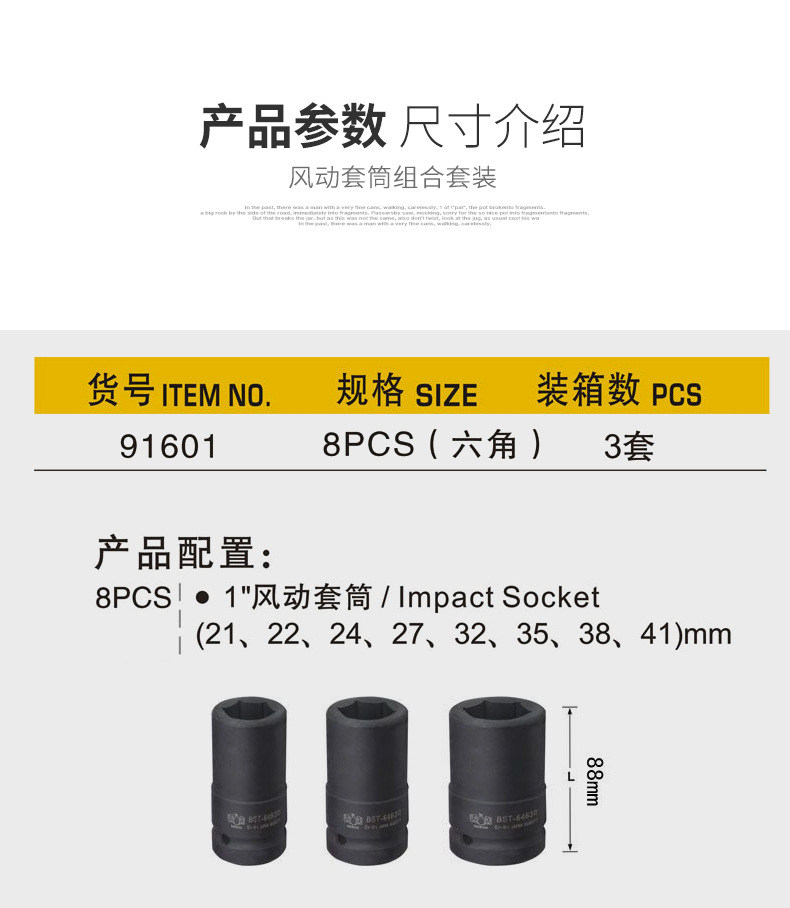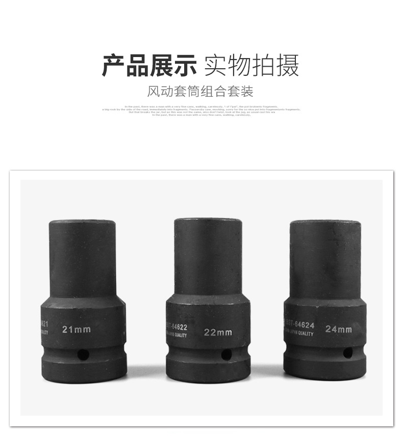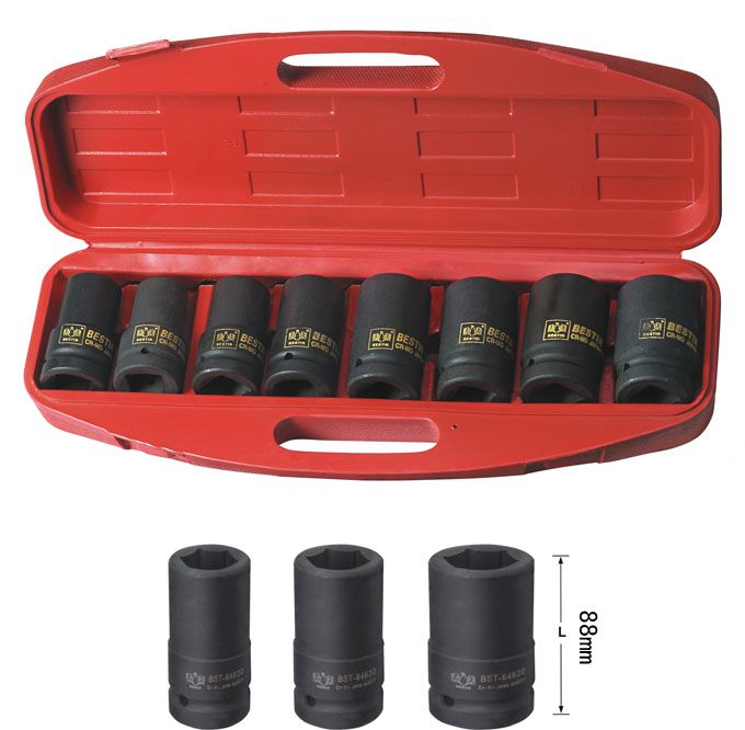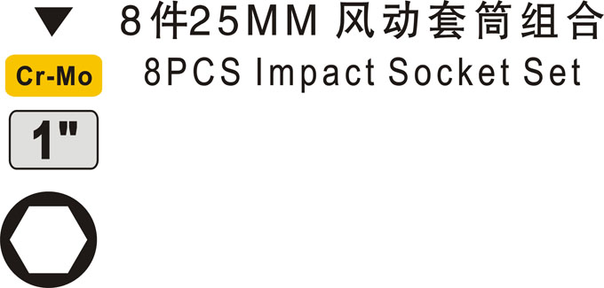 鹰之印工具 8件25MM风动六角加长套筒组合套装 气动风炮套筒91601