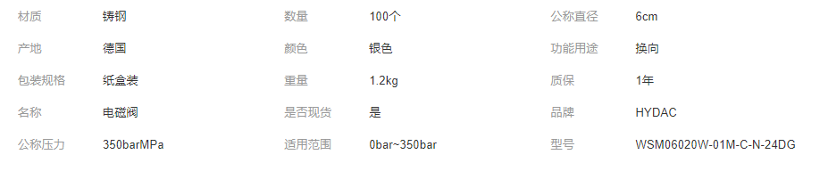 德国WSM06020W-01M-C-N-24DG液压电磁阀,贺德克HYDAC,当天发货