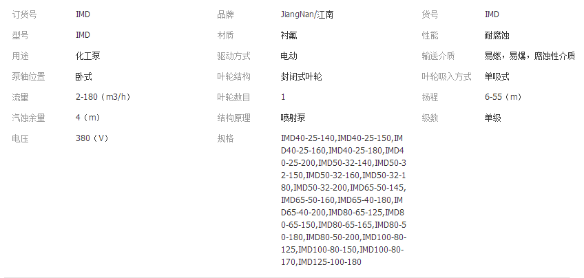 江南IMD氟塑料耐酸碱耐腐蚀磁力泵单级单吸四氟衬氟合金磁力泵