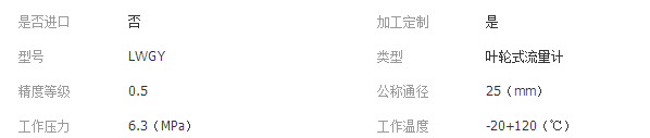 25mm,普通涡轮流量范围1~10m3/h 宽量程涡轮为0.5~10m3/h |