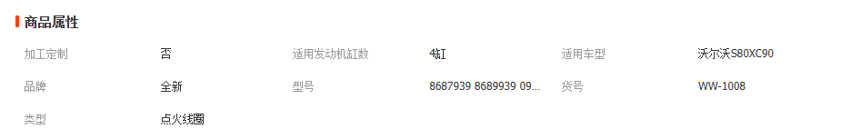 适用于沃尔沃S80XC90 点火线圈高压包8687939 8689939 0997000890