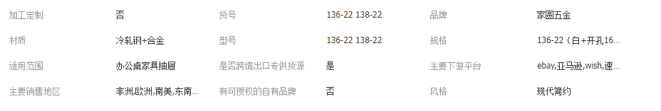 产品及价格:本公司所经营的产品均为家具配件,公司在网上公布的报价都是批发价,利润微薄请买家不要再议价。(我公司成立网络营销中心志在为中小批发商、零售商提供方便的一站式五金配件产品采购平台。)