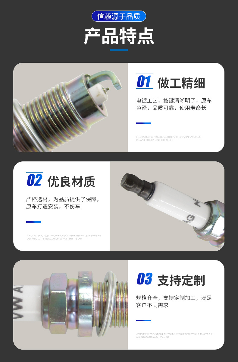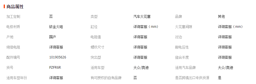 汽车火花塞适用于大众/奥迪/斯柯达 铱金火花塞101905626 PZFR6R