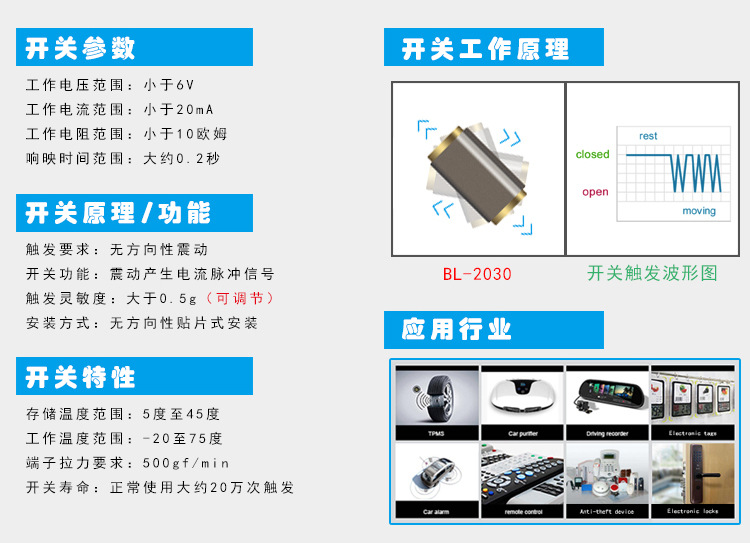BL-2030 全方向振动感应 GPS定位移动侦测 微型贴片震动传感开关