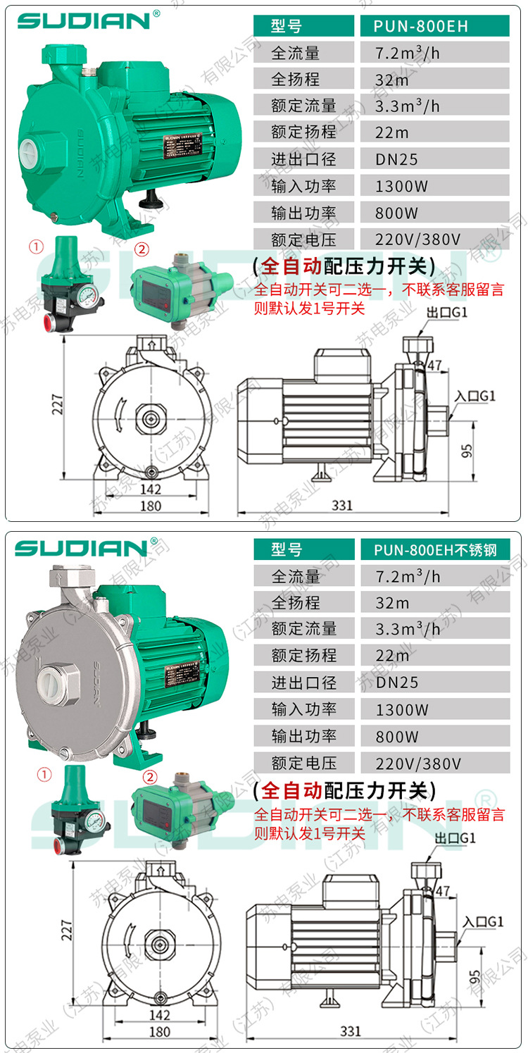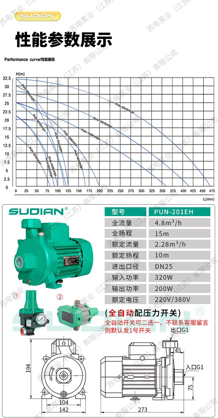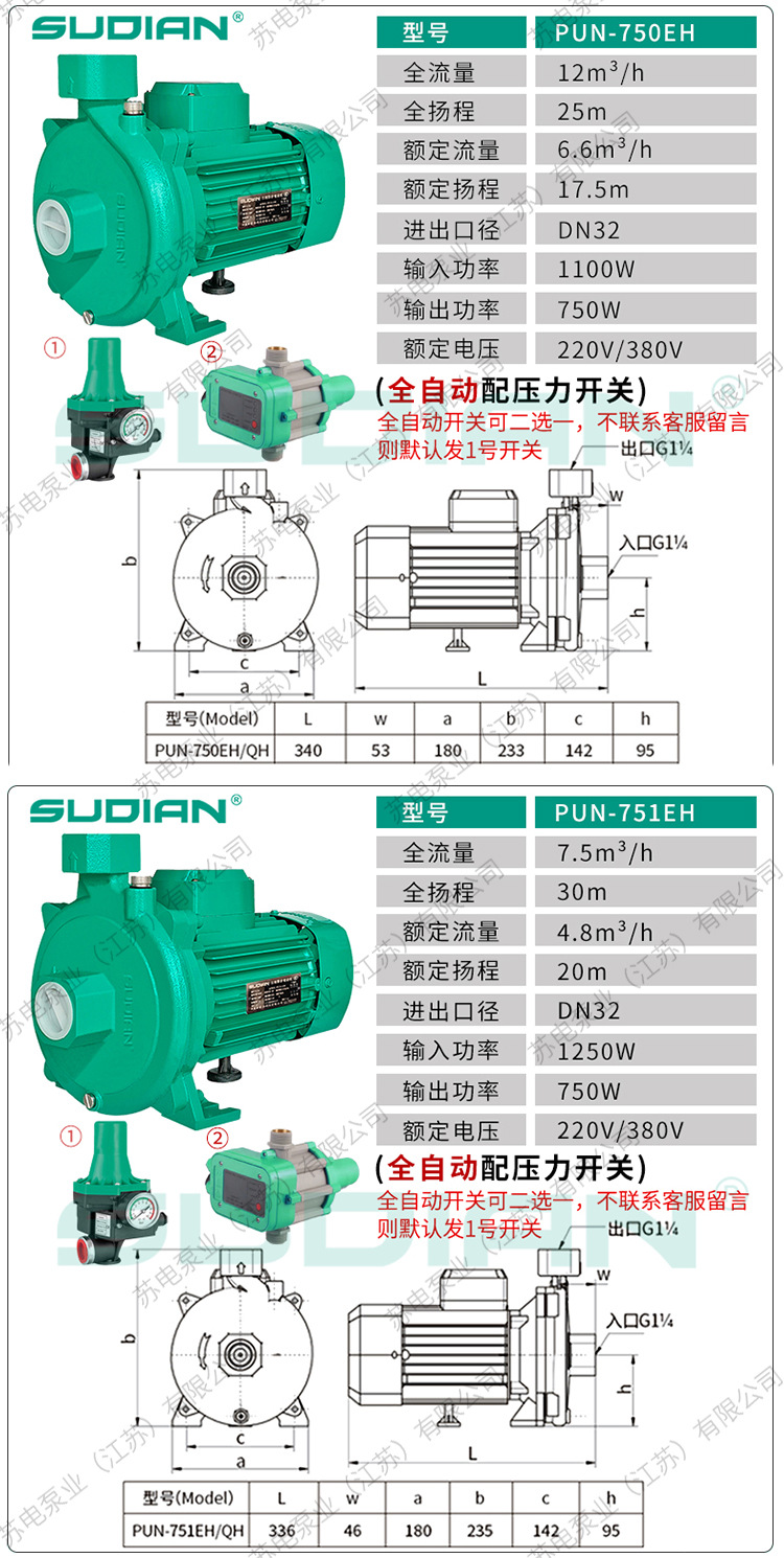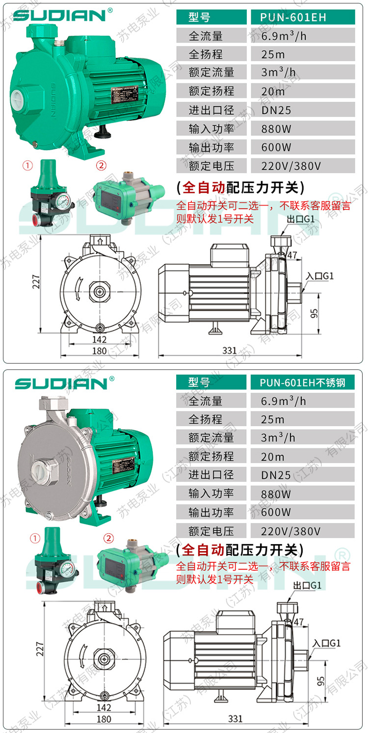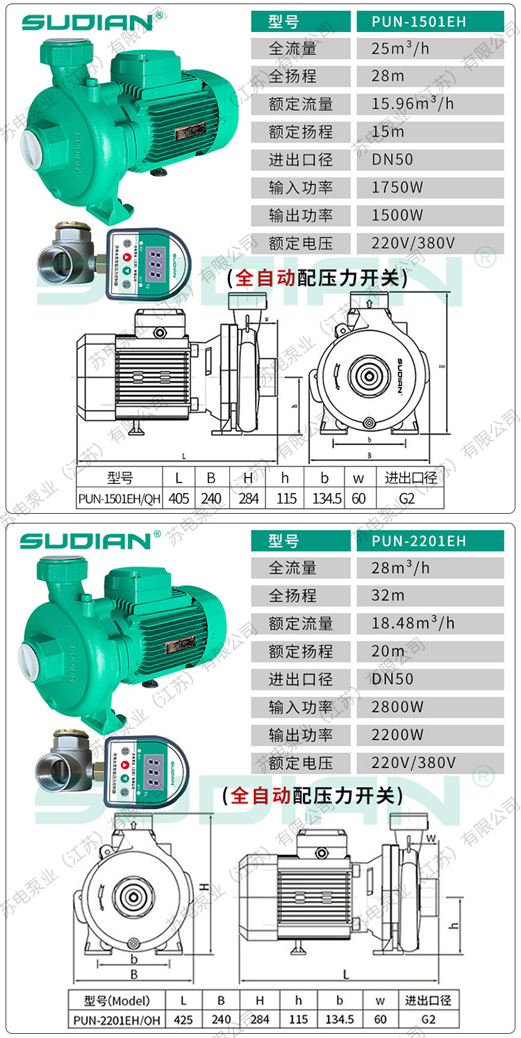 PUN-601EH400/403苏电泵业SUDIAN空气能地暖循环冷热水泵PUM600EH