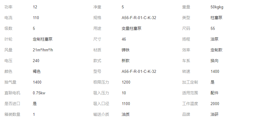 日本液压机YUKEN油泵油研柱塞泵A56-F-R-01-C-K-32注塑机