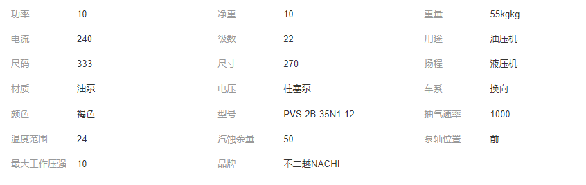 不二越NACHI柱塞泵油泵PVS-1B/0B/2B-45N1/35N1/22N3/16N2-U/Z-12