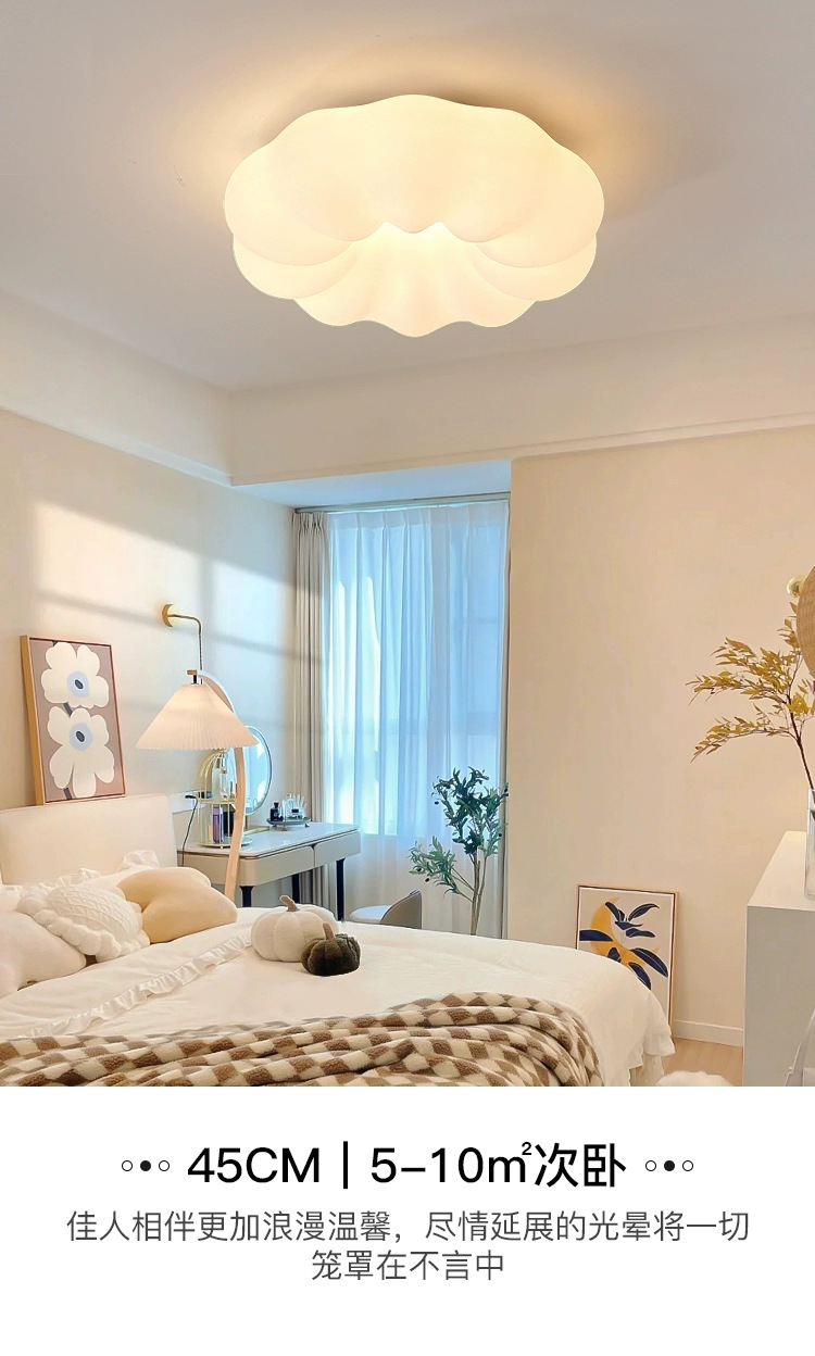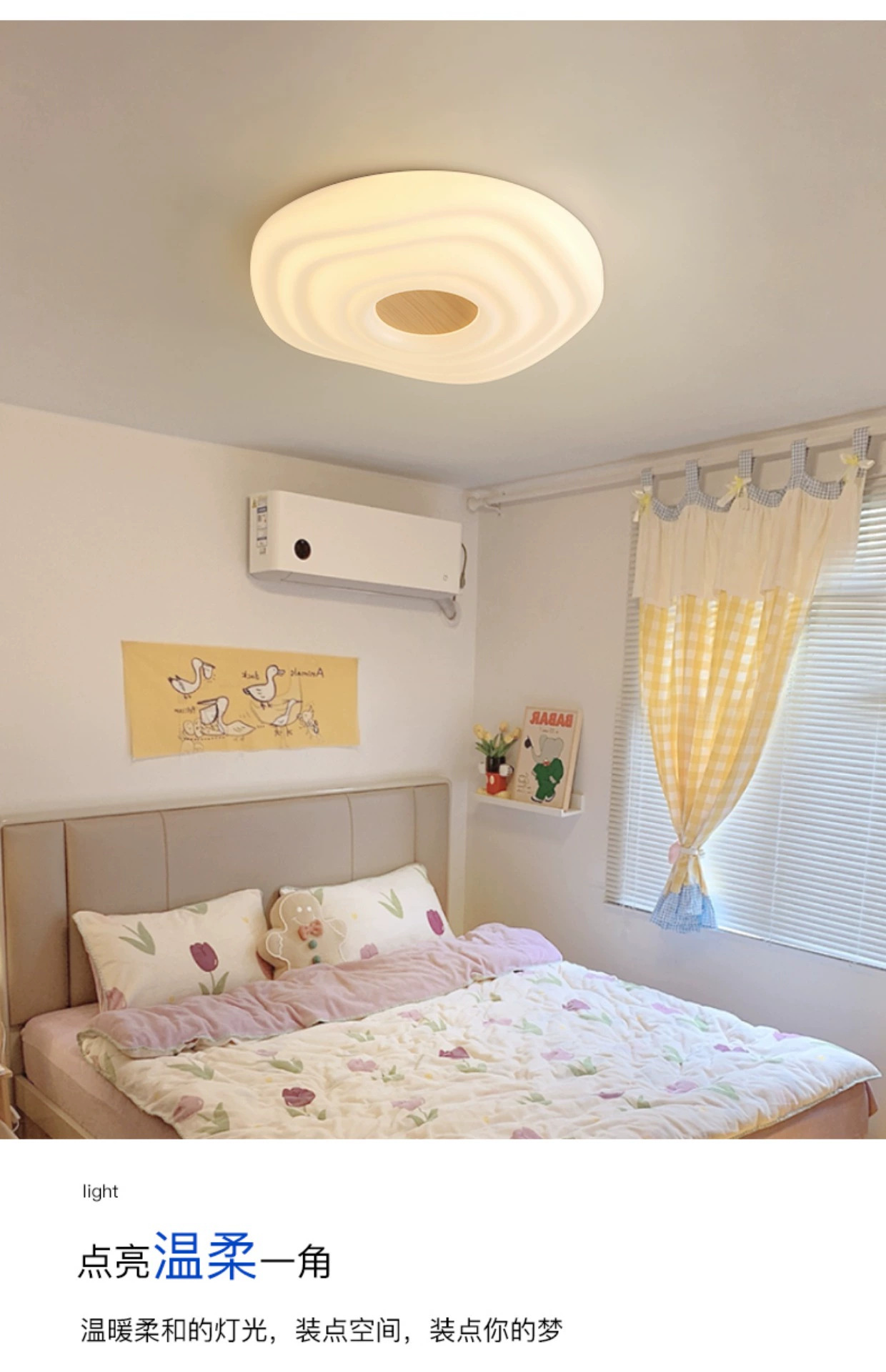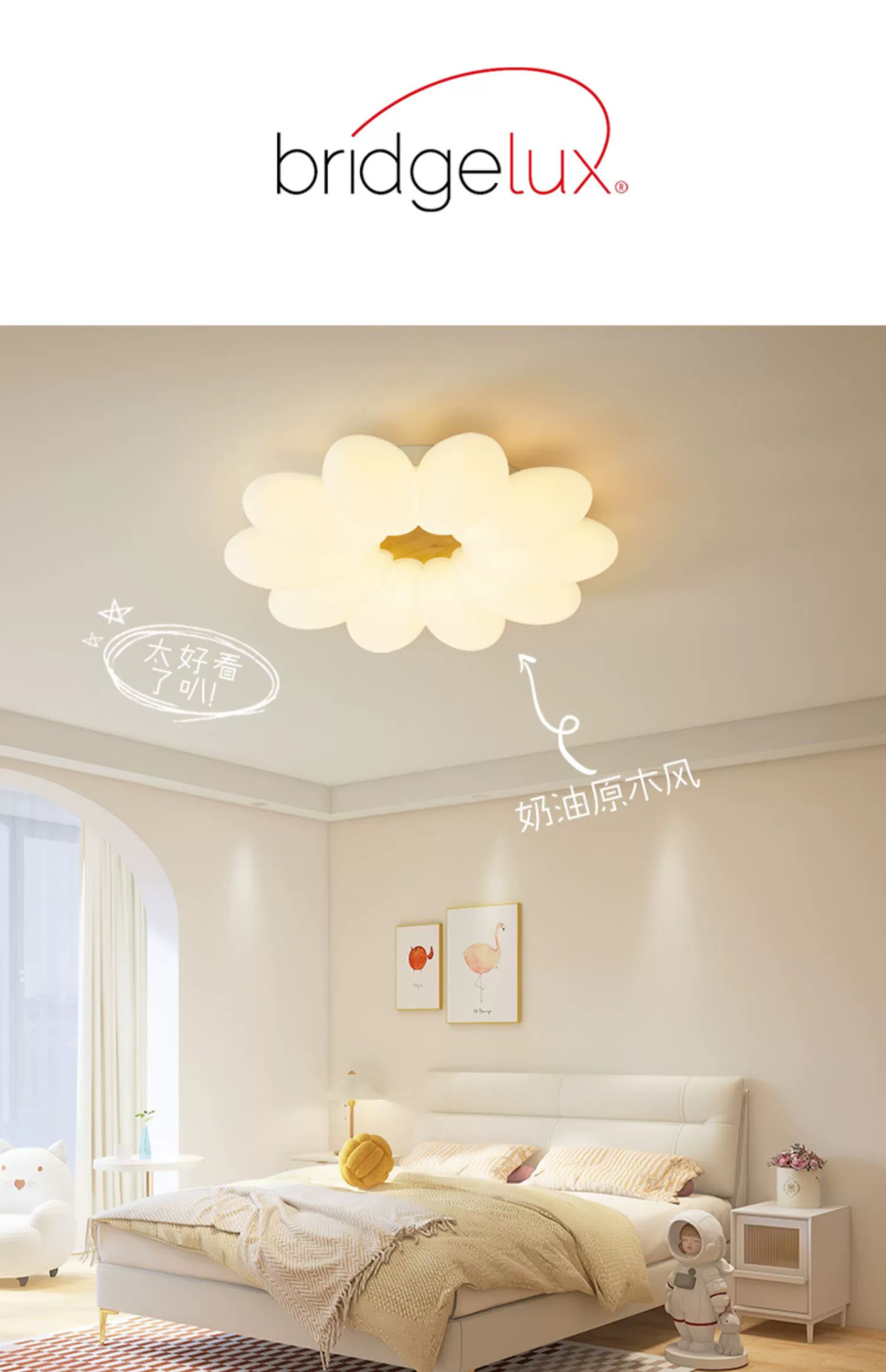 广东中山灯具温馨浪漫儿童房卧室灯原木奶油风花朵主卧房间吸顶灯
