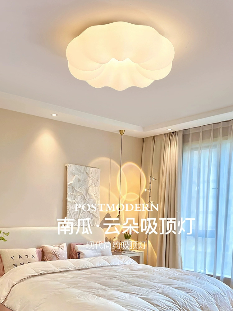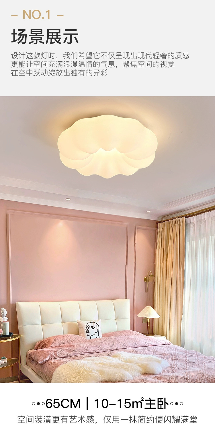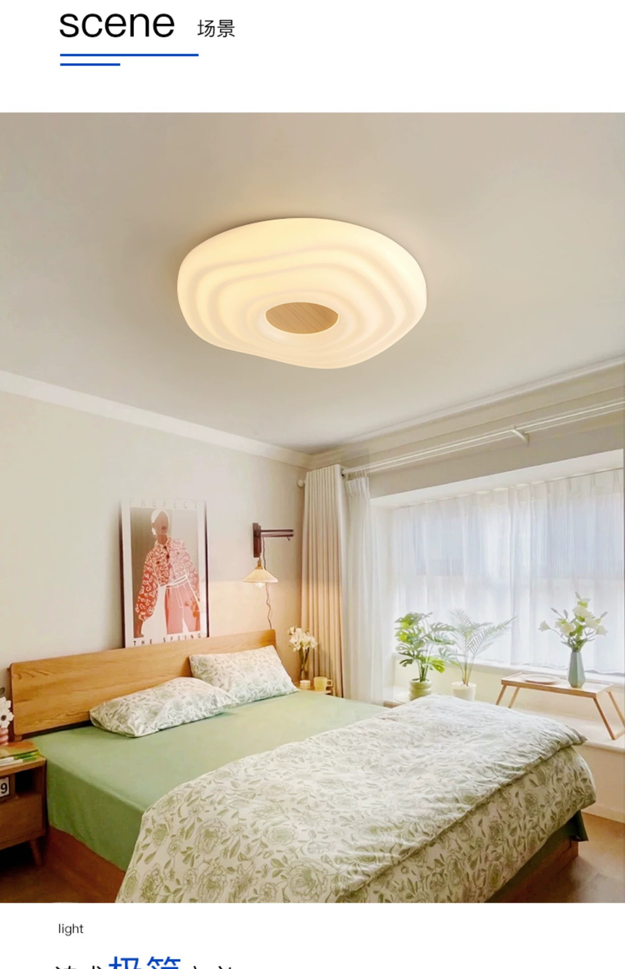 广东中山灯具温馨浪漫儿童房卧室灯原木奶油风花朵主卧房间吸顶灯