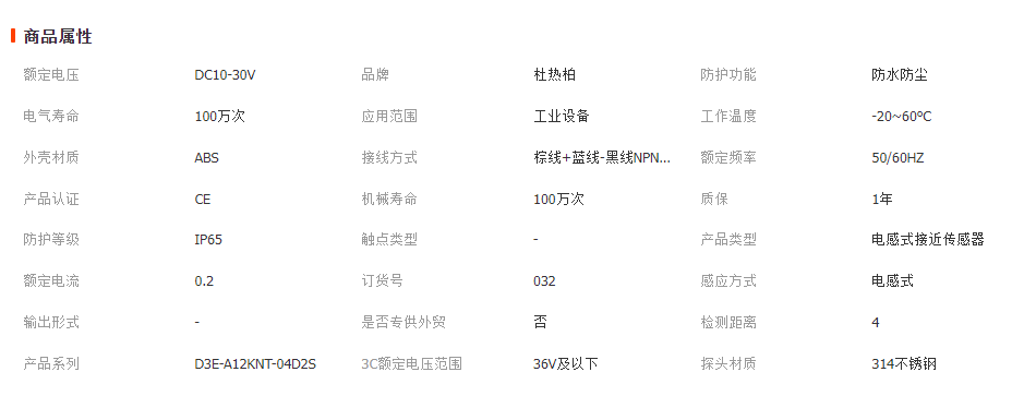 电感式接近开关D3E-A12KNT-04D2S三线金属PNP传感器感应接近开关