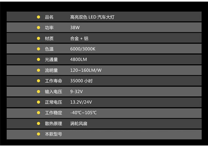 C6双色大灯 双色LED大灯高亮快启LED前照灯 适用于爆闪汽车经典款