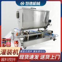 卧式气动搅拌辣椒酱膏体灌装机不锈钢U型灌装机全自动酱料灌装机