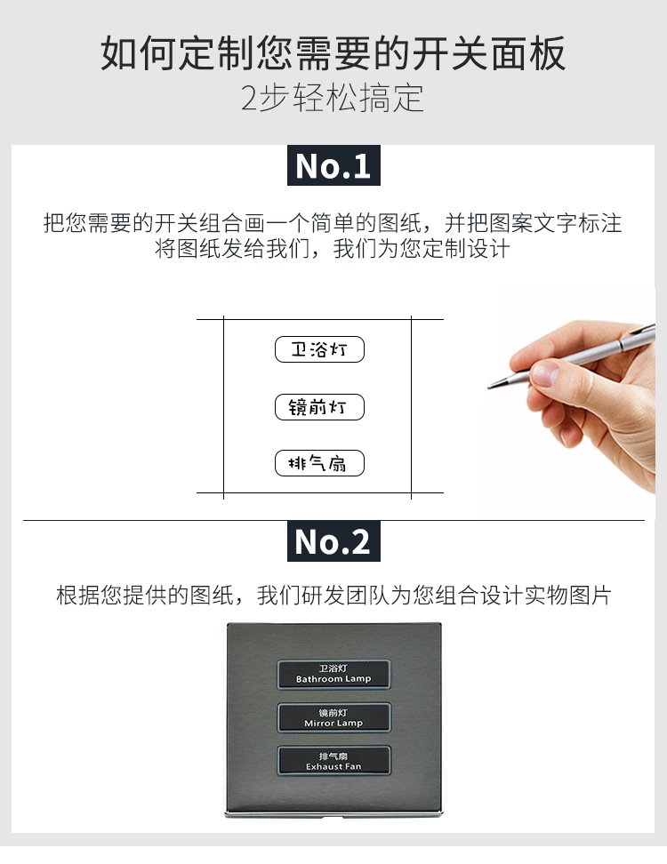本公司主要生产酒店开关 86型墙壁开关 家用墙壁开关 wifi墙壁开关 智能轻触开关 工程智能开关 zigbee智能开关 智能温控开关 智能触摸开关,485通讯协议开关,RCU客控系统,插卡取电开关,电子门牌门铃等。欢迎新老客户定制!
