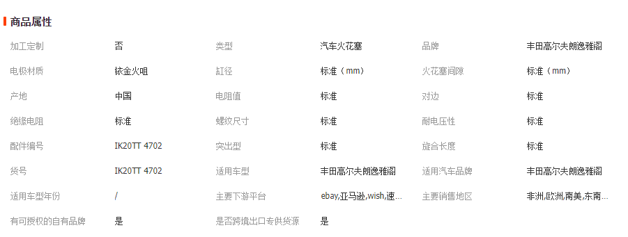 优质火花塞IK20TT 4702适用于丰田高尔夫朗逸雅阁进口双铱金火花