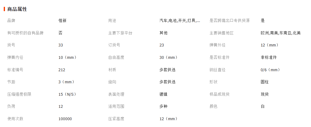 主营: 拉伸弹簧 压缩弹簧 其他弹簧