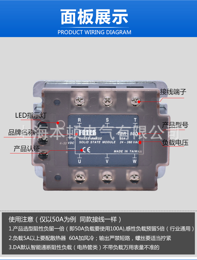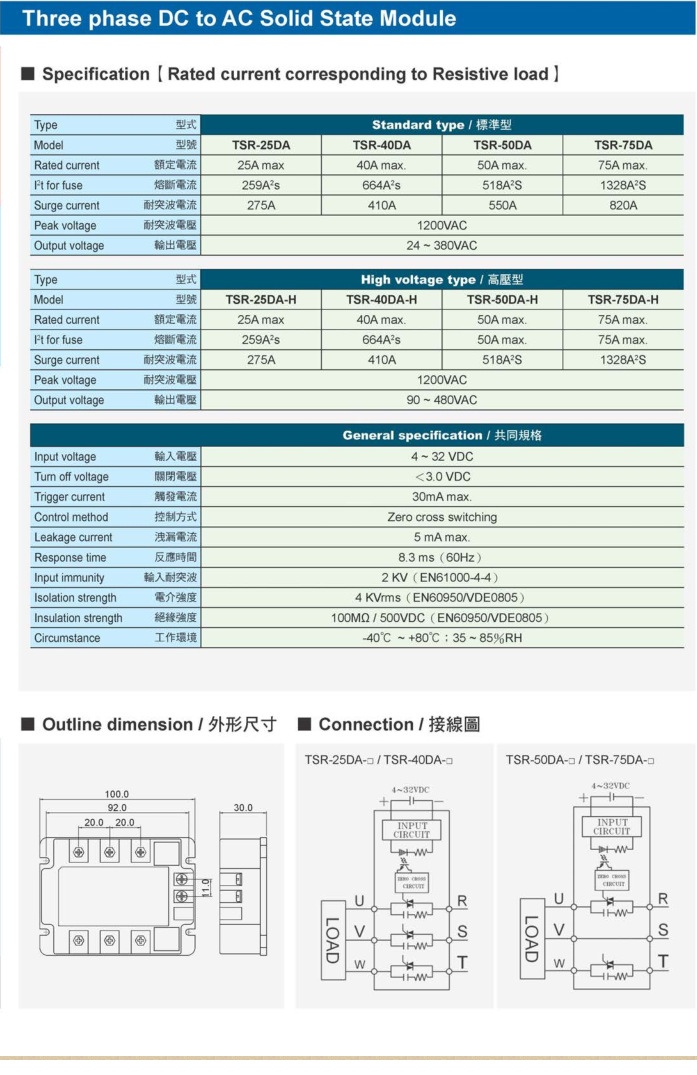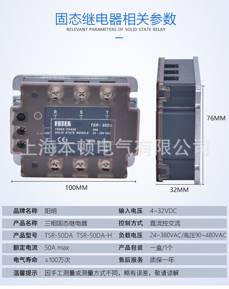 原装台湾阳明三相固态继电器 TSR-50DA/TSR-50DA-H大功率固态继电
