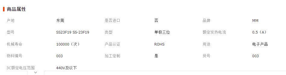 SS23F19大电流开关拨动开关滑动开关电器有耳无耳开关三档两档